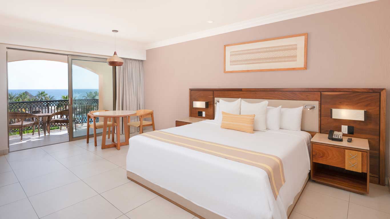 The Beautiful Deluxe Ocean View Room at Royal Solaris Cancun is a 409 ft² space offering breathtaking ocean views. It features either a king-size bed or two double beds and can accommodate up to four guests, making it a perfect choice for couples, families, or friends seeking a relaxing beachfront getaway.